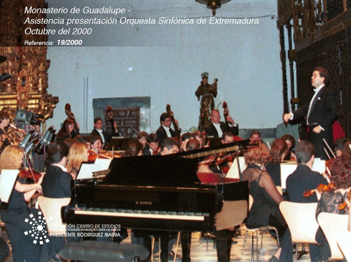 20 años de música después, en #ExtremaduraEnImágenes rendimos homenaje a la historia de nuestra orquesta rescatando de la Fototeca y Videoteca de Fundceri el concierto de presentación de la Orquesta de Extremadura, en el Monasterio de Guadalupe, que tuvo lugar el 27 de octubre del 2000. Al acto asistieron, los que en esas fechas eran: