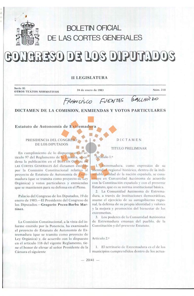 - Texto del primer Estatuto de Autonomía de ExtremaduraTexto del primer Estatuto de Autonomía de Extremadura