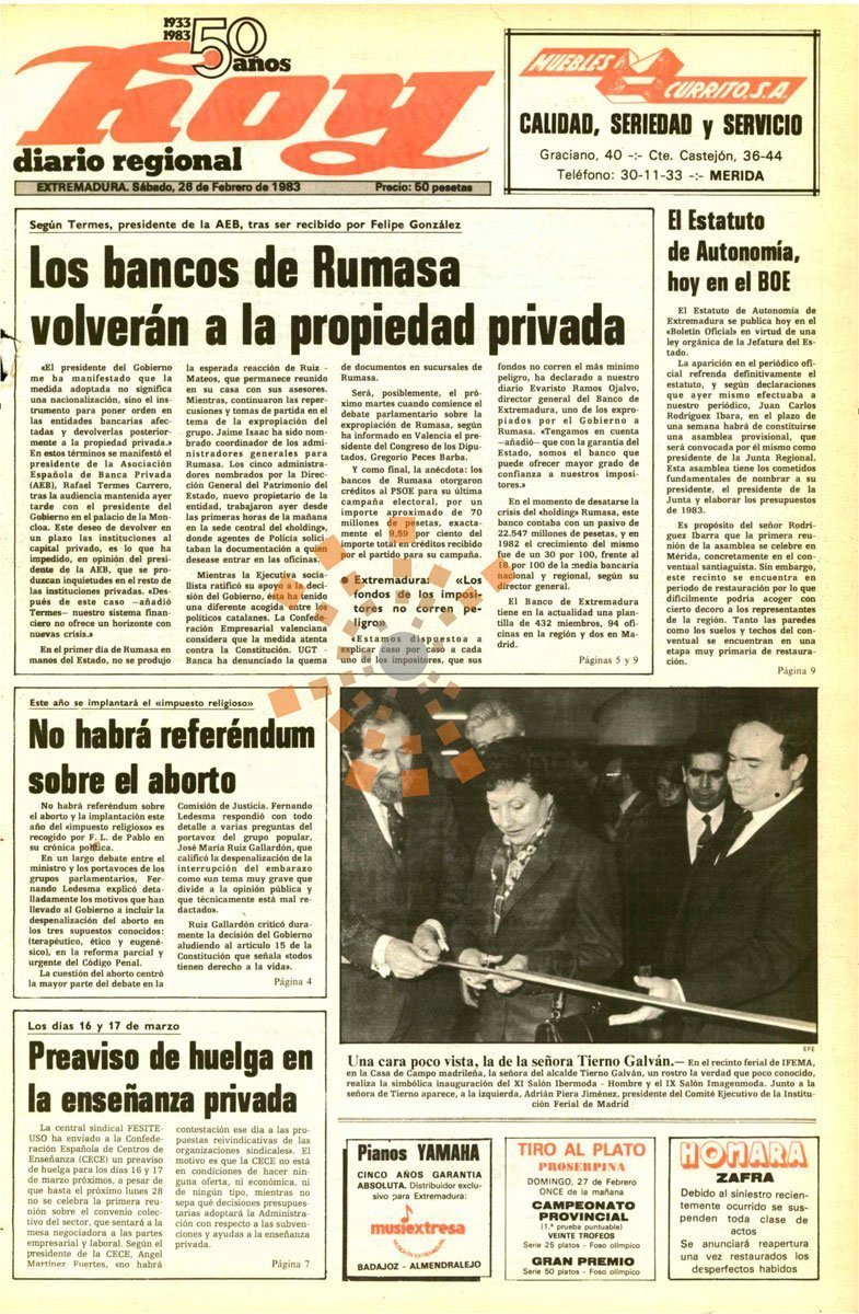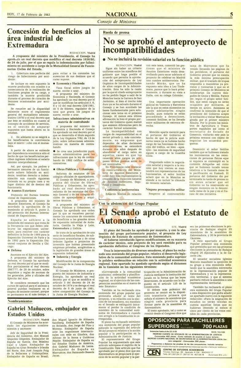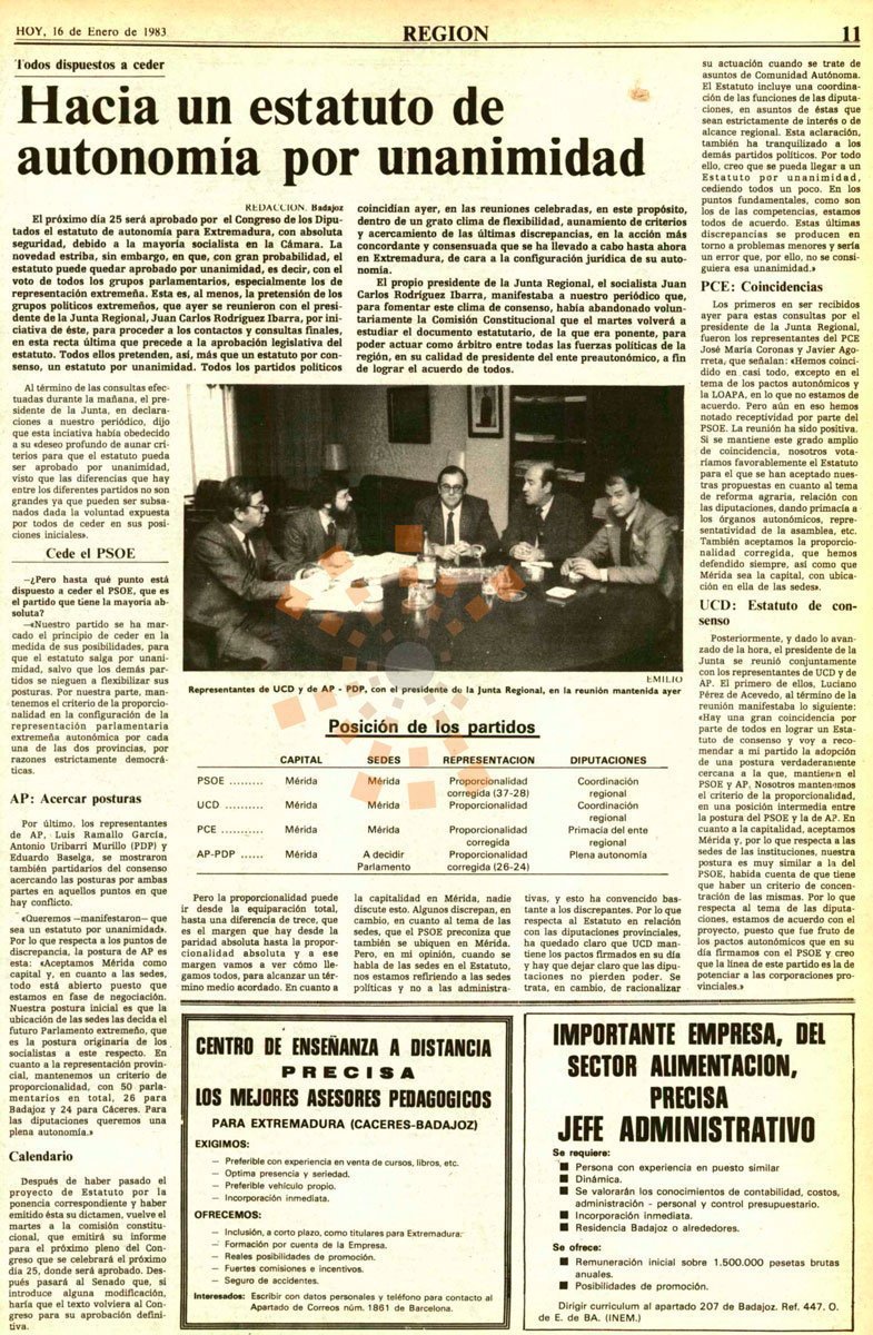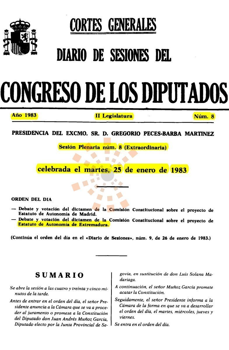 Pero no fue hasta febrero de 1983 cuando las Cortes Españolas votaron a favor de la Autonomía de Extremadura.