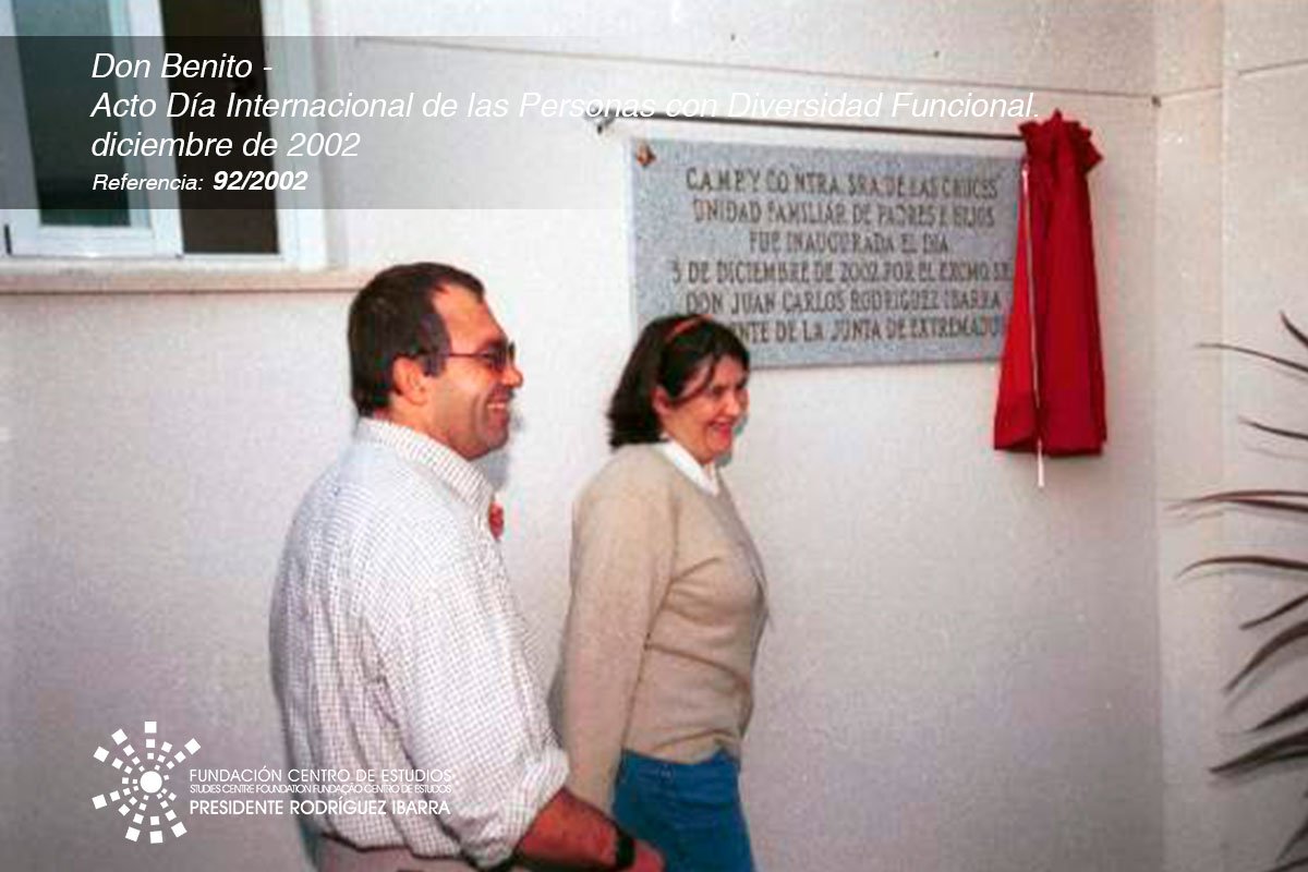 Tratamos de construir un mundo inclusivo, accesible y sostenible para todos. Por eso, desde #ExtremaduraEnImágenes y con motivo del Día Internacional de las Personas con Diversidad Funcional queremos recordar el acto de inauguración del nuevo módulo padres e hijos C.A.M.P. del día 3 de diciembre de 2002 en Ntra. Sra. de las Cruces, Don Benito.