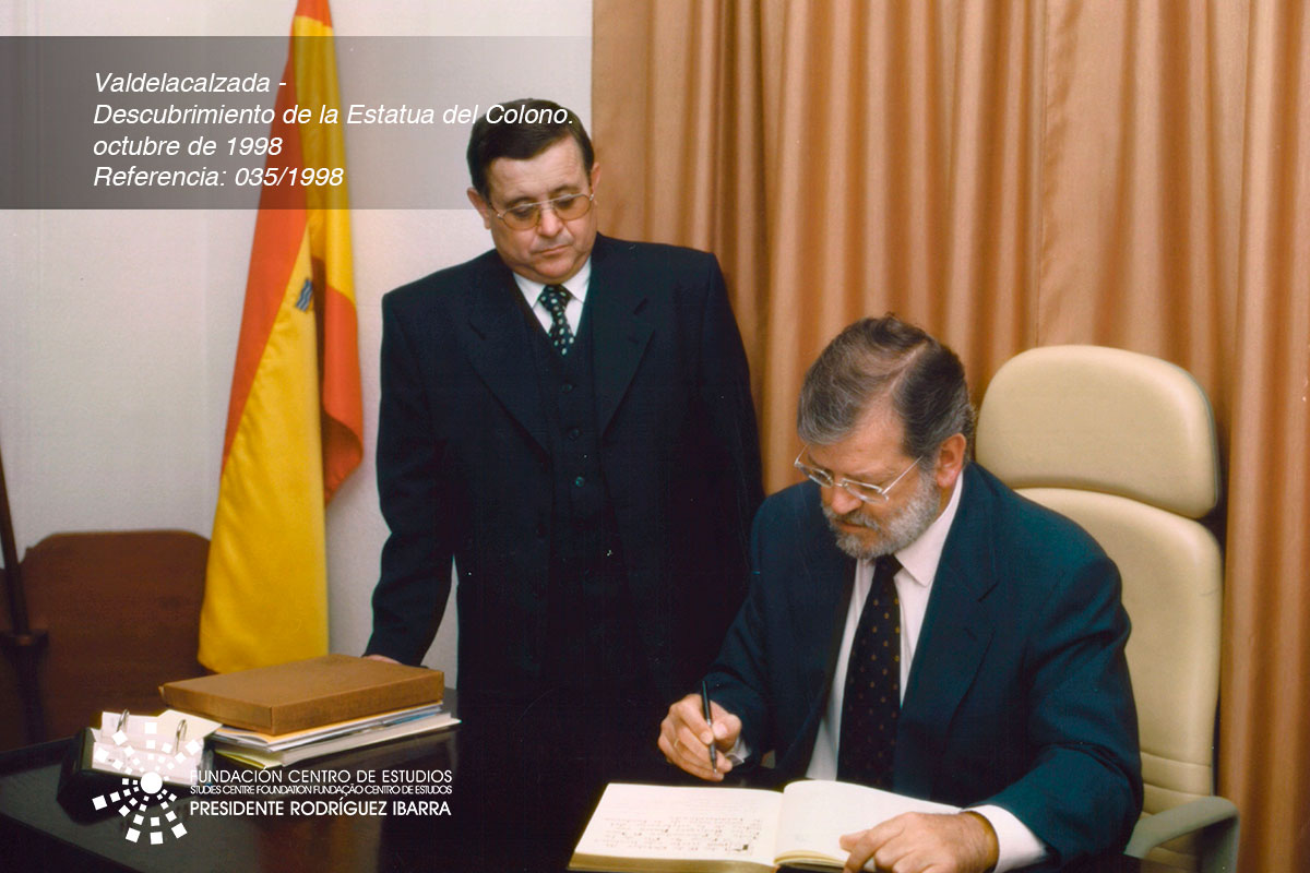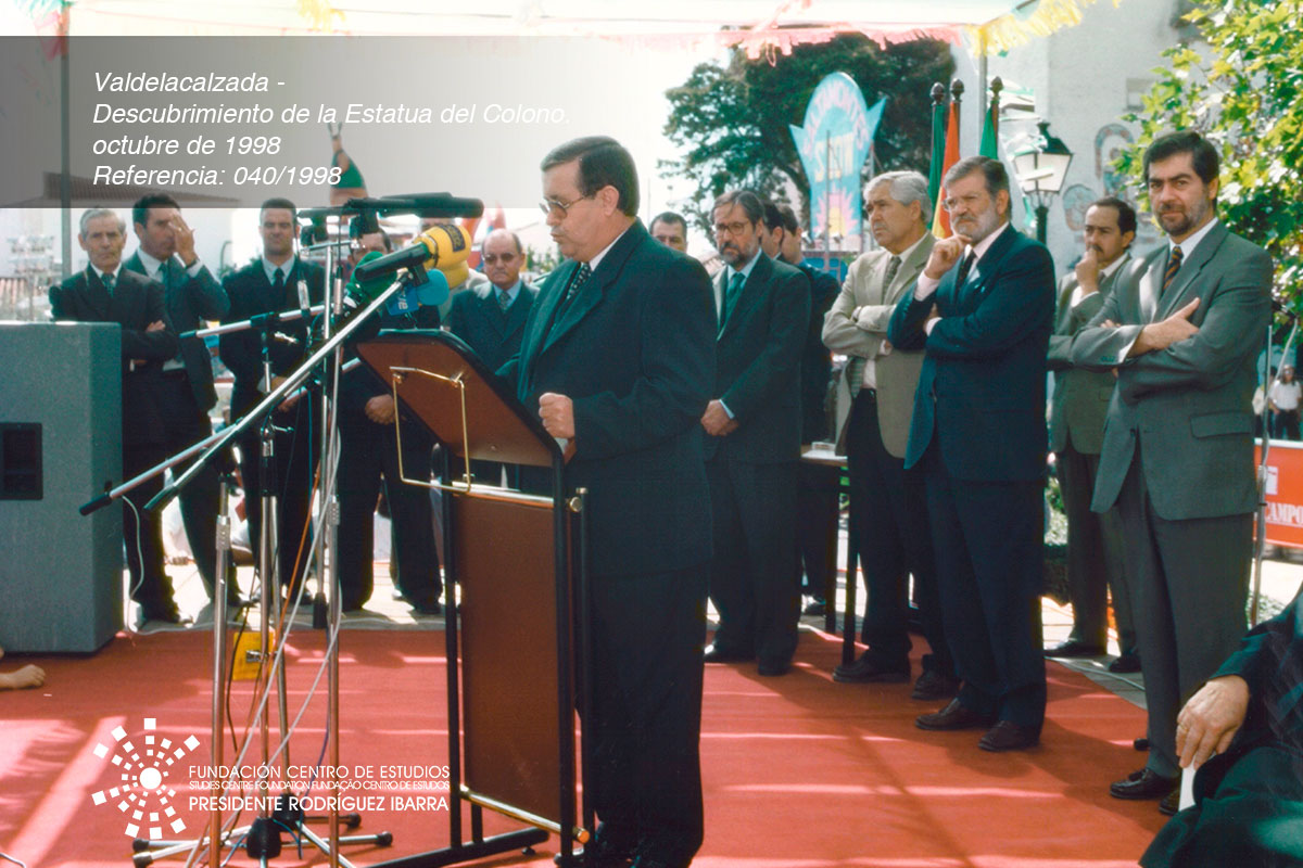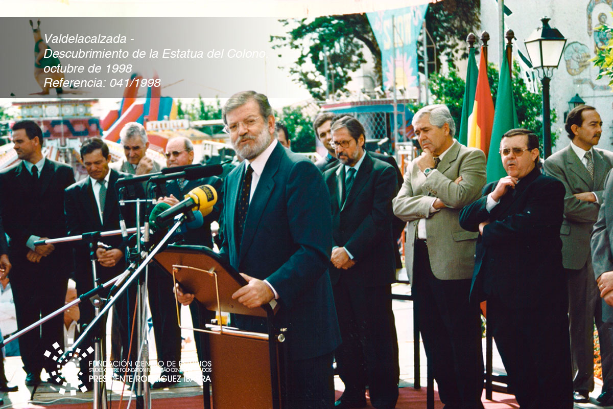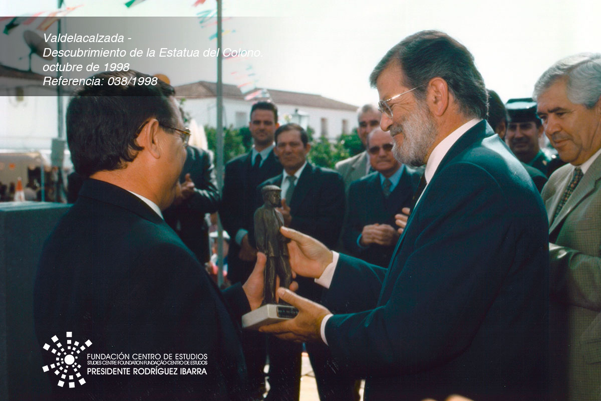El 10 de octubre de 1998 se celebró el 50 Aniversario de Valdelacalzada, día en el que programaron una serie de inauguraciones y, en concreto, el descubrimiento del monumento al “Colono”, homenaje a los primeros grupos de colonos que se instalaron en el pueblo y que laboraron por una reforma agraria y por el progreso de dicha comunidad. Desde #ExtremaduraEnImágenes hacemos mención a este encuentro.