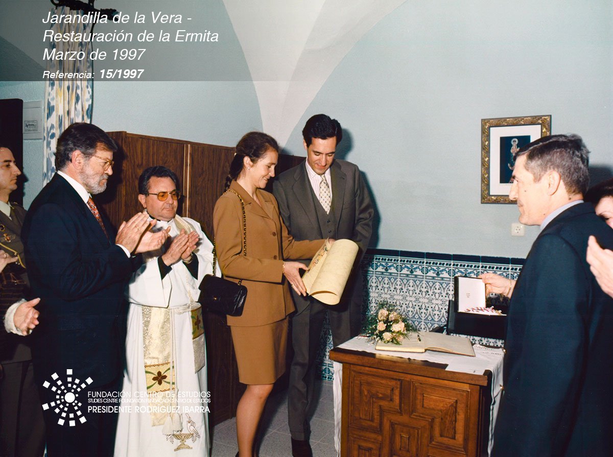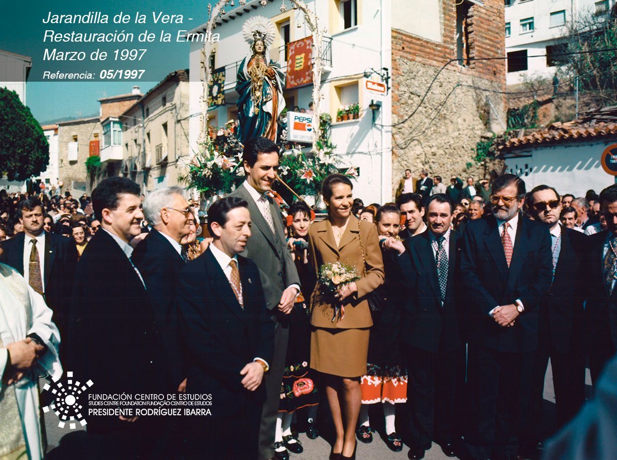 Al acto acudieron el entonces Presidente de la Junta de Extremadura, D. Juan Carlos Rodríguez Ibarra, junto a la Infanta Elena de Borbón, su exmarido y el pueblo de Jarandilla de la Vera.