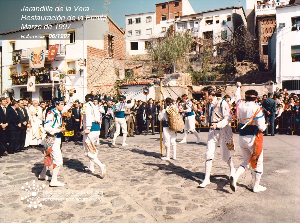 Bailes regionales, ofrendas florales y cintas de colores adornaban las calles de Jarandilla de la Vera en marzo de 1997 con motivo de las ferias y fiestas patronales de la Virgen de Sopetrán y la restauración de la Ermita, evento que recordamos en Extremadura en Imágenes.