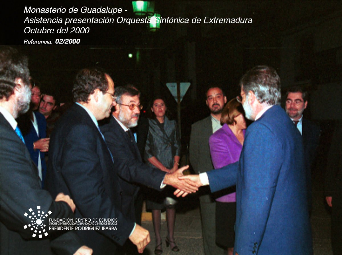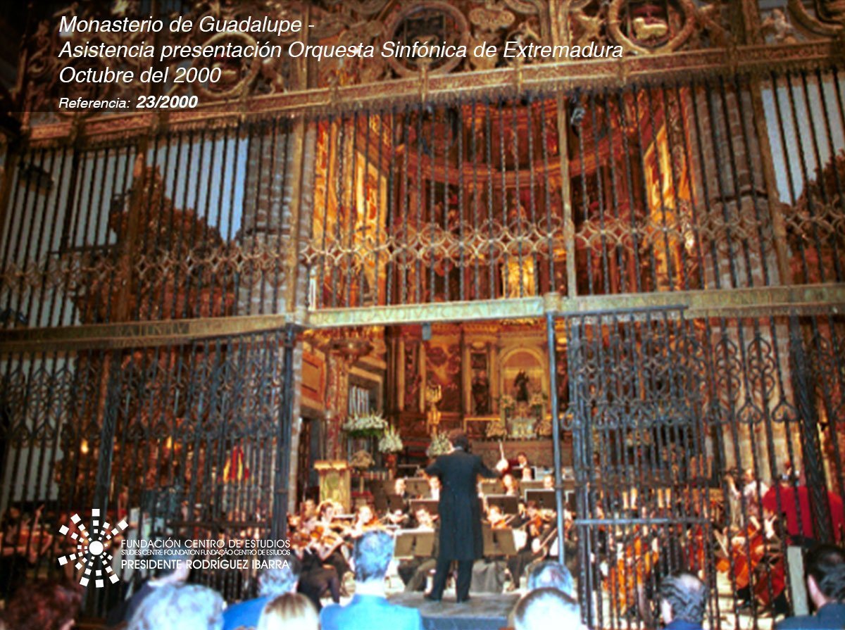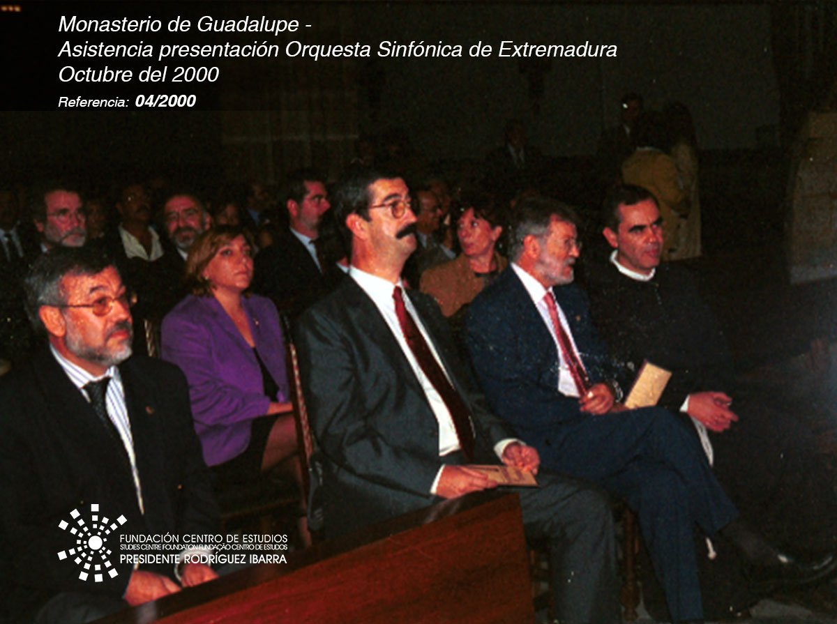 20 años de música después, en #ExtremaduraEnImágenes rendimos homenaje a la historia de nuestra orquesta rescatando de la Fototeca y Videoteca de Fundceri el concierto de presentación de la Orquesta de Extremadura, en el Monasterio de Guadalupe, que tuvo lugar el 27 de octubre del 2000. Al acto asistieron, los que en esas fechas eran: