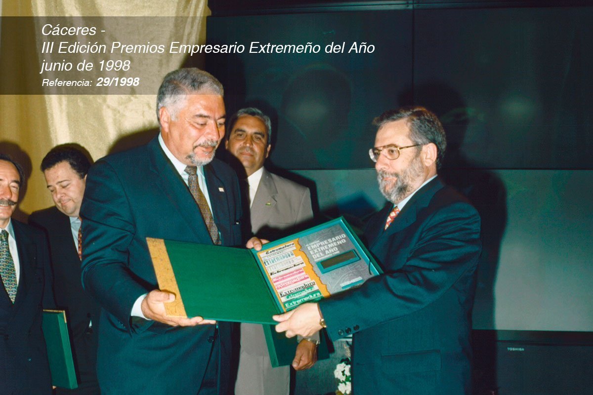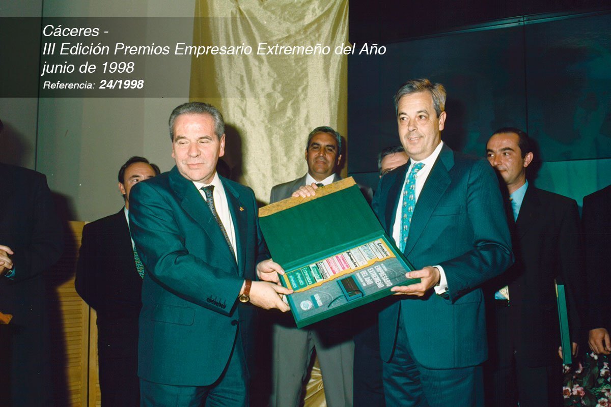 Recuperamos las imágenes de la III Edición de los Premios Empresario Extremeño del Año, celebrada en 1998 en Cáceres.